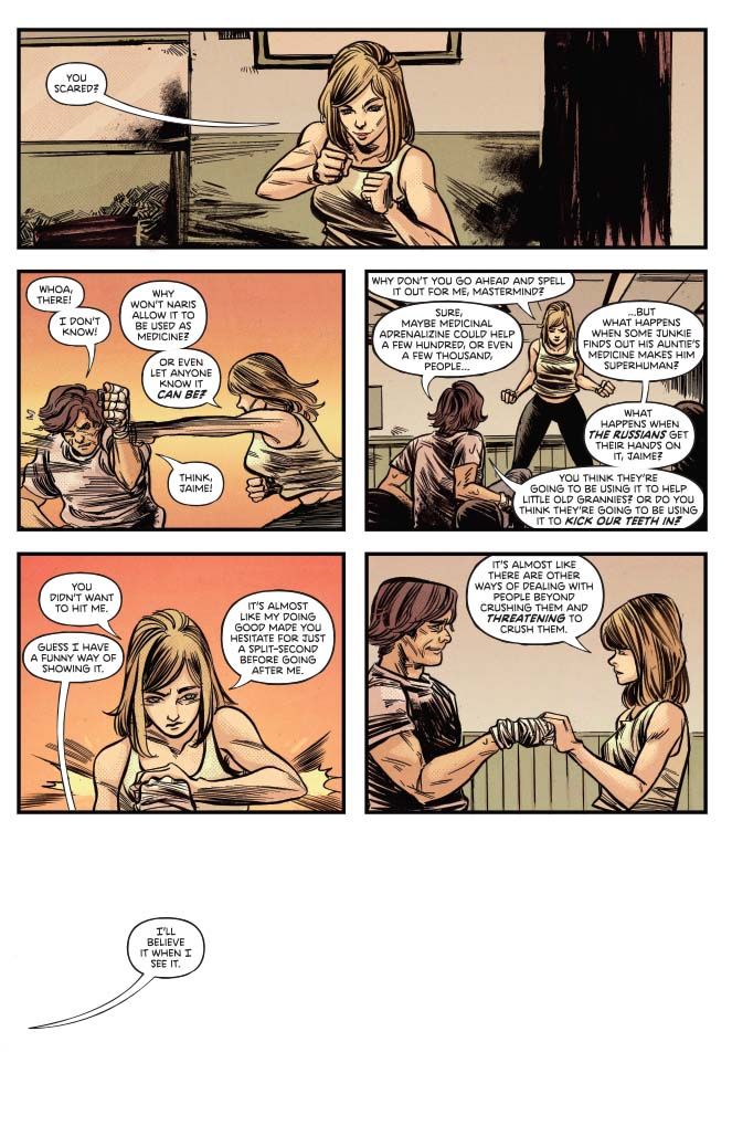 What’s a hero to fight for? In this arc’s thrilling conclusion, the Angels have made an unlikely ally in their quest to steal the powerful adrenaline formula from Naris Corp. — but will it be enough to overcome the military contractor’s upgraded security? They’ll need a bold plan, incredible feats of espionage and a little luck if they want to stop the possibility of a bionically enhanced war machine in its tracks. But OSI alumni The Bionic Woman and Oscar Goldman may be none too eager to allow such powerful technology outside of Naris control, despite potential medical applications.