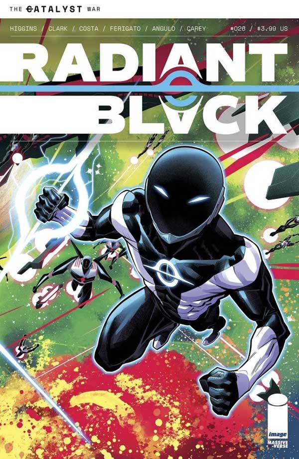 Known for pushing the envelope with unique twists, easter eggs, and multimedia tie-ins, the Massive-Verse’s Radiant Black, by Kyle Higgins, Marcelo Costa, Eduardo Ferigato, and Joe Clark, will have fans doing a double-take next month yet again—literally—with the release of two issues: Radiant Black #26 and the Radiant Black #26.5.