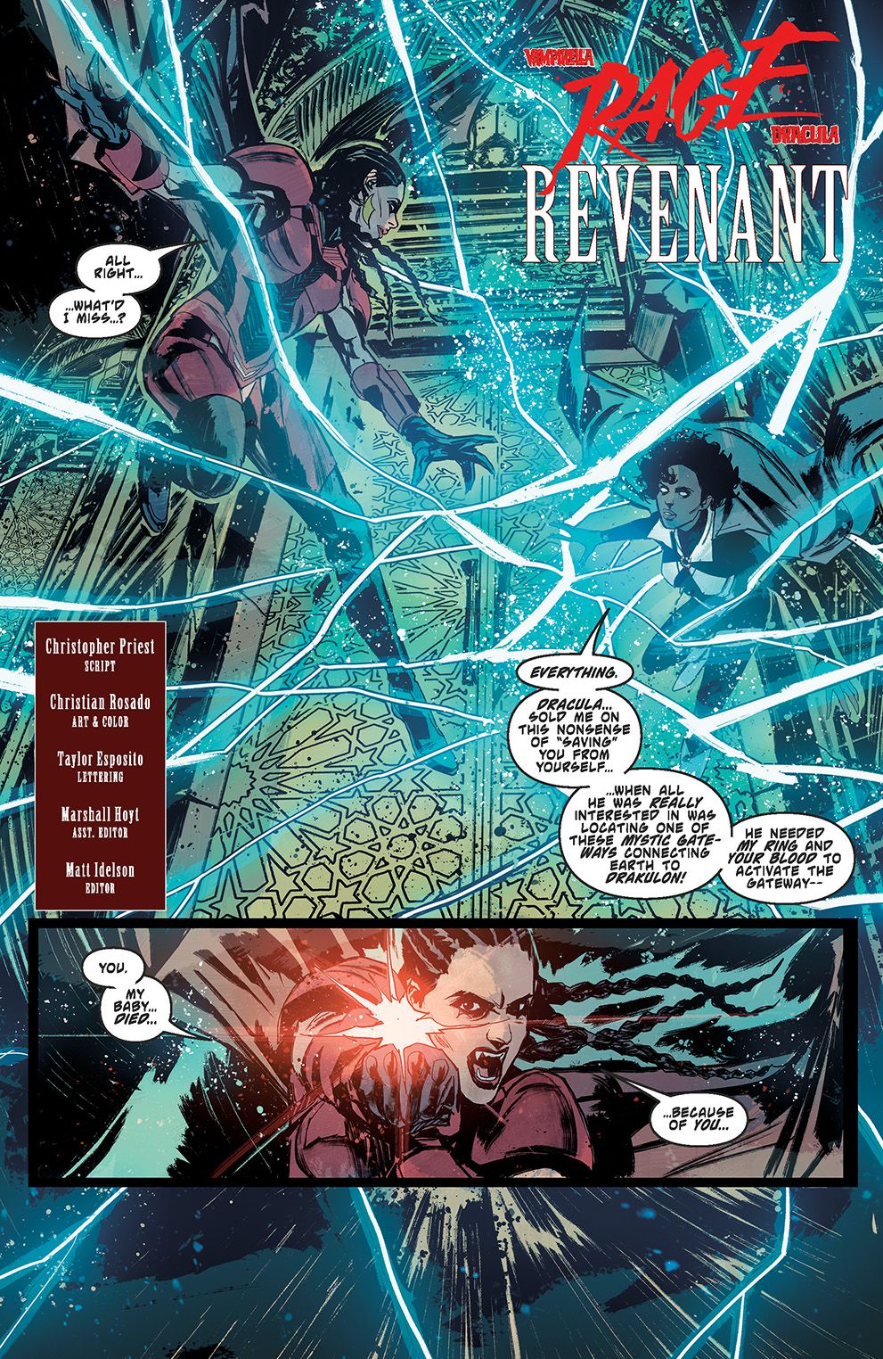 The final chapter of Vampirella’s twisted journey with the Lord of Vampires ends in a deadly conflagration of hidden agendas as Dracula’s true motive for helping Vampirella is revealed and Victory’s love for her frenemy is severely tested. Will they be able to pull Vampirella back from the brink of darkness? Or is she lost to them forever? Find out in this explosive issue from master storytellers CHRISTOPHER PRIEST and CHRISTIAN ROSADO!