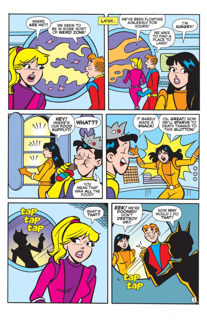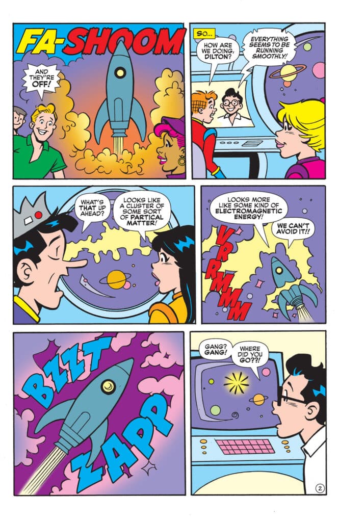 What readers should prepare for in Archie & Friends: Space Adventures is a narrative that begins with a characteristic bit of Riverdale ambition. Dilton Doiley has built a rocket, and for reasons that only make sense in a comic book, the entire gang is ready to test it. While the takeoff goes smoothly, the spacecraft soon enters a mysterious realm where traditional navigation fails. Transitioning from the safety of earth’s orbit to the unknown depths of space, the teens find themselves truly “Lost in Space.”