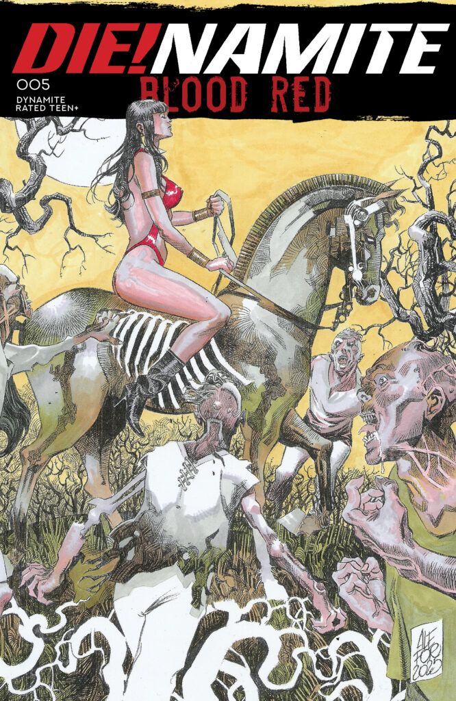 In conclusion, Die!namite: Blood Red #5 is a must-read that delivers a satisfying and bloody end to a major chapter. By pairing sharp writing with atmospheric art, the issue captures the essence of what makes zombie horror so enduring. Whether you are a fan of Red Sonja or simply love a good apocalyptic battle, this finale is the closure you’ve been waiting for. Don’t miss this concluding chapter before the contagion claims Sunset City for good!