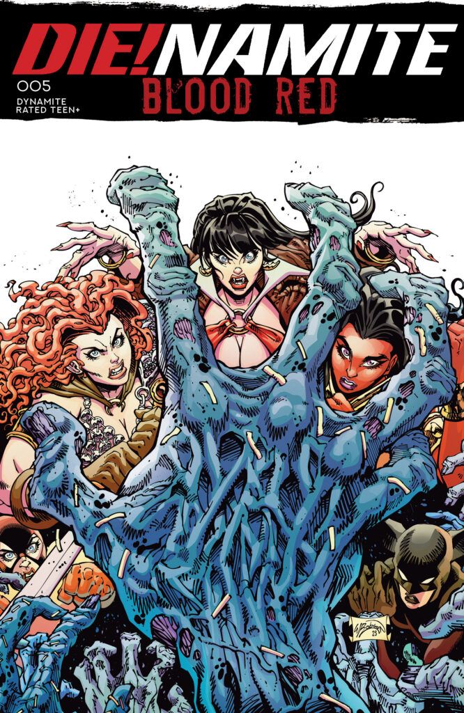 What readers should prepare for in Die!namite: Blood Red #5 is a race against time that leaves no room for error. The ultimate fate of Sunset City hangs in the balance, and the remaining heroes are facing betrayal and impossible odds at every turn. Red Sonja, Vampirella, and Purgatori are at the center of the storm, serving as the femmes fatales required to end the contagion once and for all.
