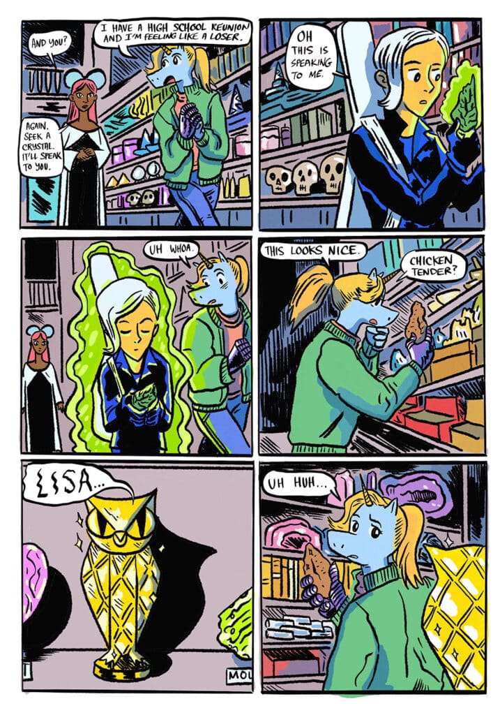 The pacing of the graphic novel allows Alvir to explore the mundanities of adulting while injecting larger-than-life elements of supernatural absurdity. Steve Orlando has described the series as a “perfect caper about magically corrupted foodstuffs,” highlighting Alvir’s ability to find provocation and excitement in the strangest places. Meanwhile, the dialogue captures the “dynamic rage” that often accompanies life’s smallest inconveniences, such as non-dairy coffee orders or social anxiety. This grounded perspective makes the fantastical elements of the story feel incredibly relatable.
