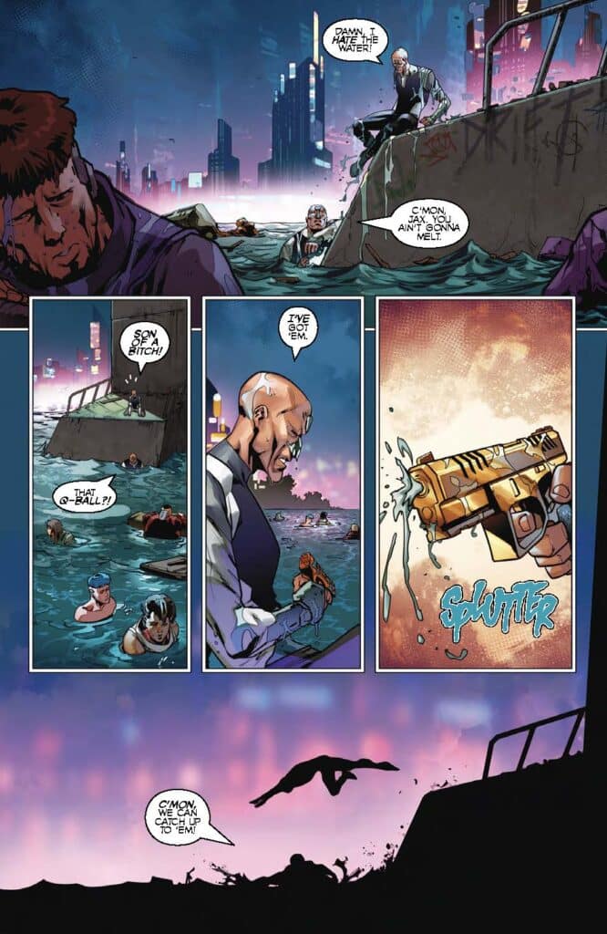 Furthermore, the issue explores the weight of Peter’s identity. He isn’t Al Simmons, and the world he lives in is vastly different from the one that birthed the first Spawn. However, the same themes of corruption and redemption remain. As Peter and Jax navigate the perils of the water, the reader is reminded that even in a world of circuits and code, the soul remains the ultimate prize. In addition, the interaction with “Q-Ball” suggests that the villains of the future are just as ruthless as the demons of the past.