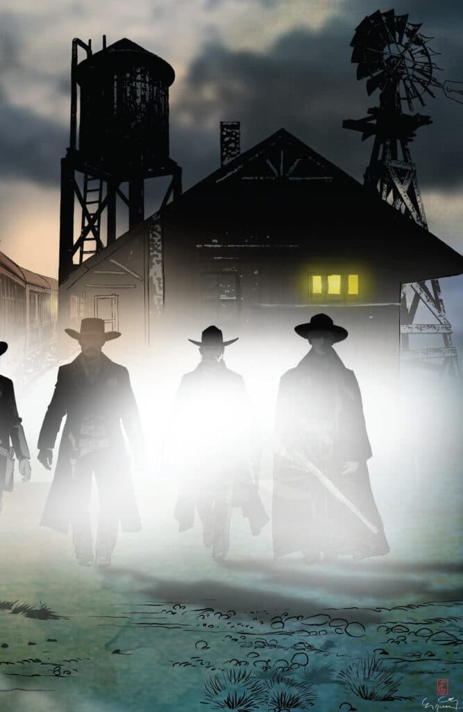 Visually, Vampirella #11 is a spectacular achievement. Ergün Gündüz brings a textured, painterly look to the Old West, capturing the sprawling vistas and the oppressive heat of the sun. The way Gündüz renders the cowboy vampires—mixing traditional western attire with monstrous, blood-slicked features—makes the environment feel uniquely dangerous. In addition, the character acting for Vampirella conveys a sense of “bored authority” that differentiates her from the frantic mortals surrounding her.