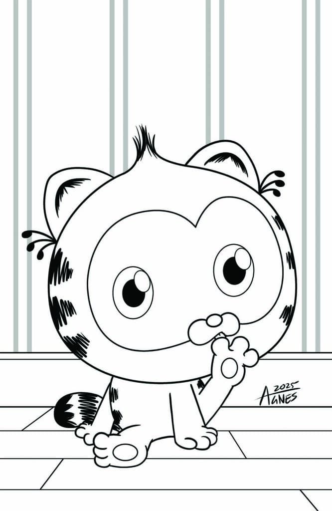 Visually, Baby Garfield #1 is a spectacular achievement for the art team. Agnes Garbowska provides a main cover that perfectly captures the “oh-so-adorable” aesthetic required for a prequel series. Inside, Asia Simone and Rob Justus utilize different yet complementary styles to emphasize the “tiny troublemaker” aspect of the character. Rendering a “dapper, sophisticated” kitten who is secretly plotting his next meal requires a level of artistic authority that the team delivers with visceral flair.
