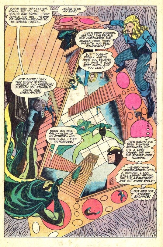 This ability—which he dubbed the “Vertigo Effect”—distorted the perceptions of anyone within range, making it impossible for them to distinguish up from down. Donning a high-collared, spectacular green and yellow costume, he took the name Count Vertigo and became a mathematical certainty for success in the underworld. His first major clash brought him into direct conflict with Green Arrow and Black Canary, establishing a hierarchy of rivalry that would last for decades.