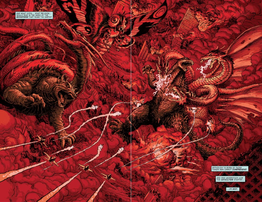 Visually, the inclusion of Godzilla in Hell makes this volume a spectacular achievement. Creators like James Stokoe utilize a hyper-detailed style that captures the rhythmic tension of celestial combat. Rendering the “impossible tortures” of the pit requires a level of artistic authority that few can match, making every page feel like an artifact of cosmic horror. Meanwhile, the final story in the collection, Oblivion by Joshua Hale Fialkov and Brian Churilla, offers a “What If” style adventure where a baby kaiju accidentally hitches a ride to a monster-less dimension.