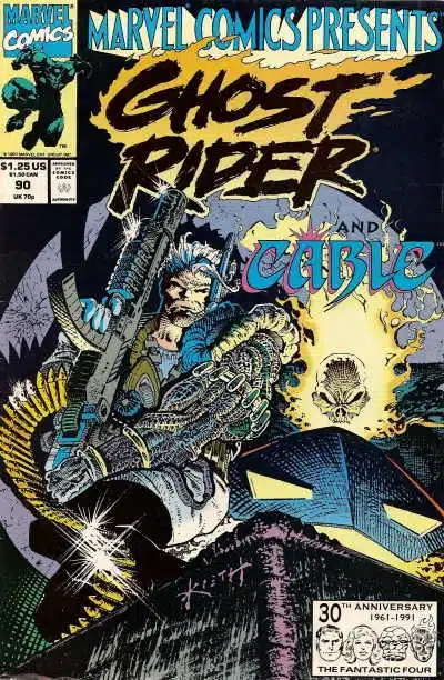What readers should prepare for in Marvel Comics Presents #90 is a narrative that finds its heart in a “clash of icons.” The issue kicks off the “Servants of the Dead” arc, written by Howard Mackie. The story follows Ghost Rider (Danny Ketch) as he is drawn into a pensive conflict with the time-traveling mutant Cable. The hierarchy of power is inverted here; instead of a standard superhero brawl, the dialogue remains sharp and grounded in the consequences of their violent methods. Transitioning from the quiet shadows of a Brooklyn alley to the high-energy impact of a chain-and-gunfight keeps the tension at a critical mass.