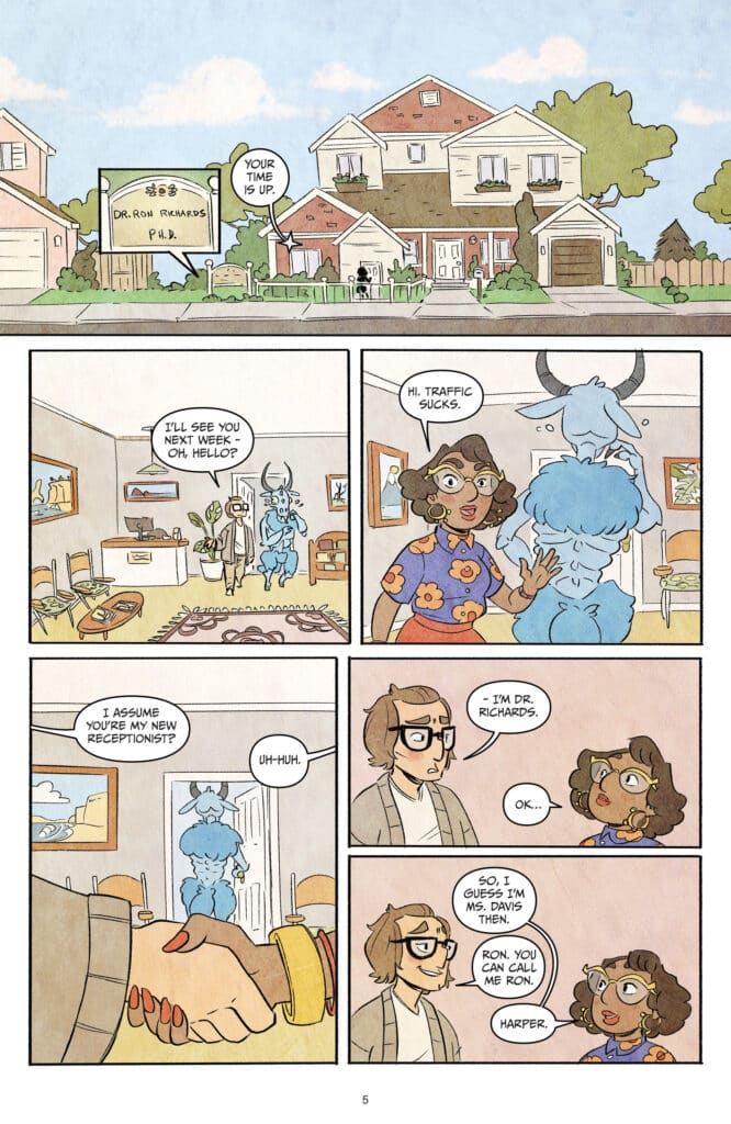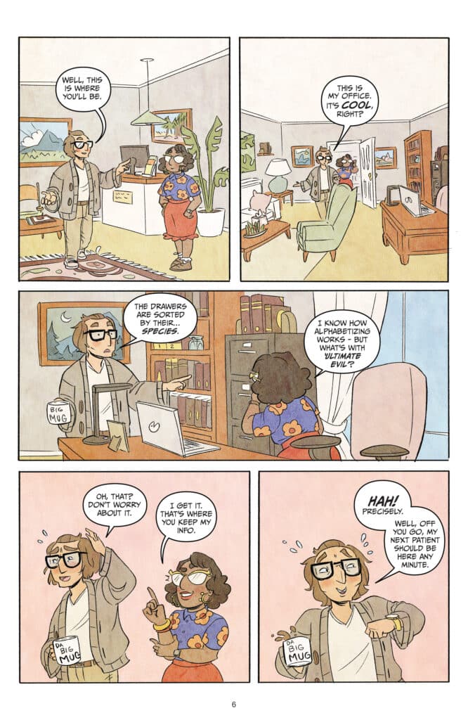 The pacing of the debut allows for a deep dive into Dr. Ron’s daily grind. While he tries to help a weeping blue monster work through its progress, he’s also dealing with the mundane struggles of a busy practice. The introduction of his new receptionist, Harper, provides a hilarious “normal” lens through which we view the chaos. Harper quickly learns that in this office, the filing cabinets aren’t just for insurance forms—they are sorted by species and contain folders labeled “Ultimate Evil.” For fans who track comic book covers for their character Acting, the preview pages showcase a world where happiness can be as fleeting for a cryptid as it is for a human.