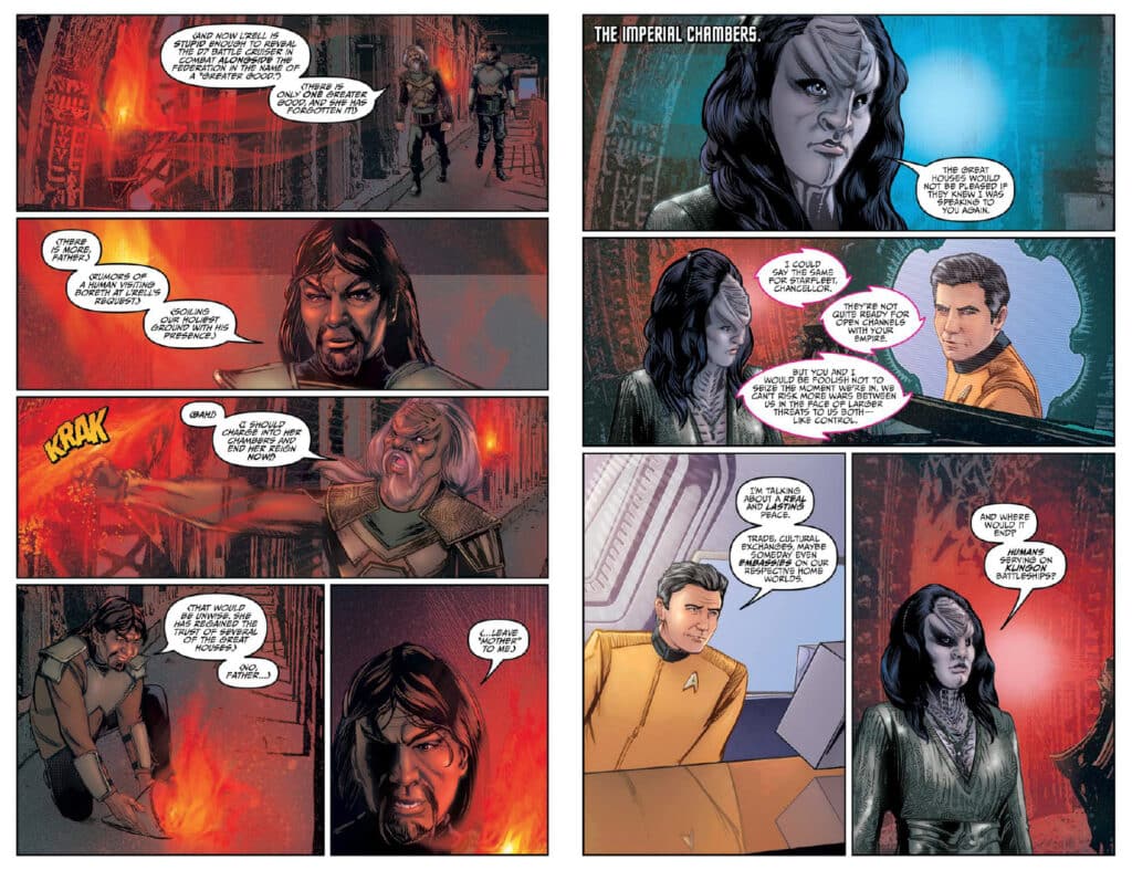 Visually, the Star Trek: Discovery Omnibus is a spectacular achievement. Tony Shasteen and Angel Hernandez have mastered the difficult art of rendering recognizable likenesses while maintaining a kinetic comic aesthetic. The character acting captures every flinch of Vulcan logic and every spark of Klingon fury, rendered with a clarity that emphasizes the high emotional stakes of the Spore Drive missions. Rendering the “black alert” sequences and the diverse biologies of the 32nd century requires a level of artistic authority that both artists deliver with visceral flair.