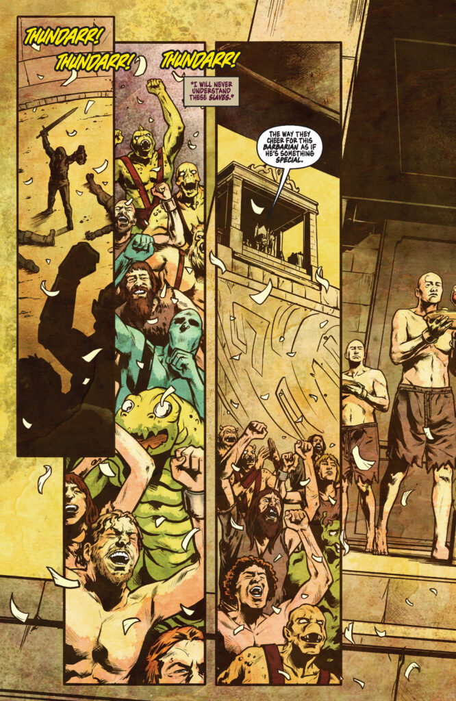 In addition to the main plot, the world-building continues to impress. We see the contrast between the frozen mountains where Thundarr was raised and the “Old Earth” ruins of stadium arenas used for blood sports. This pensive look at what was lost during the “Great Catastrophe” gives the series a weight that the original animation could only hint at. Whether you are following the mystery of the wizards’ spell or simply soaking in the spectacular artwork, this issue is an essential addition to any collection.