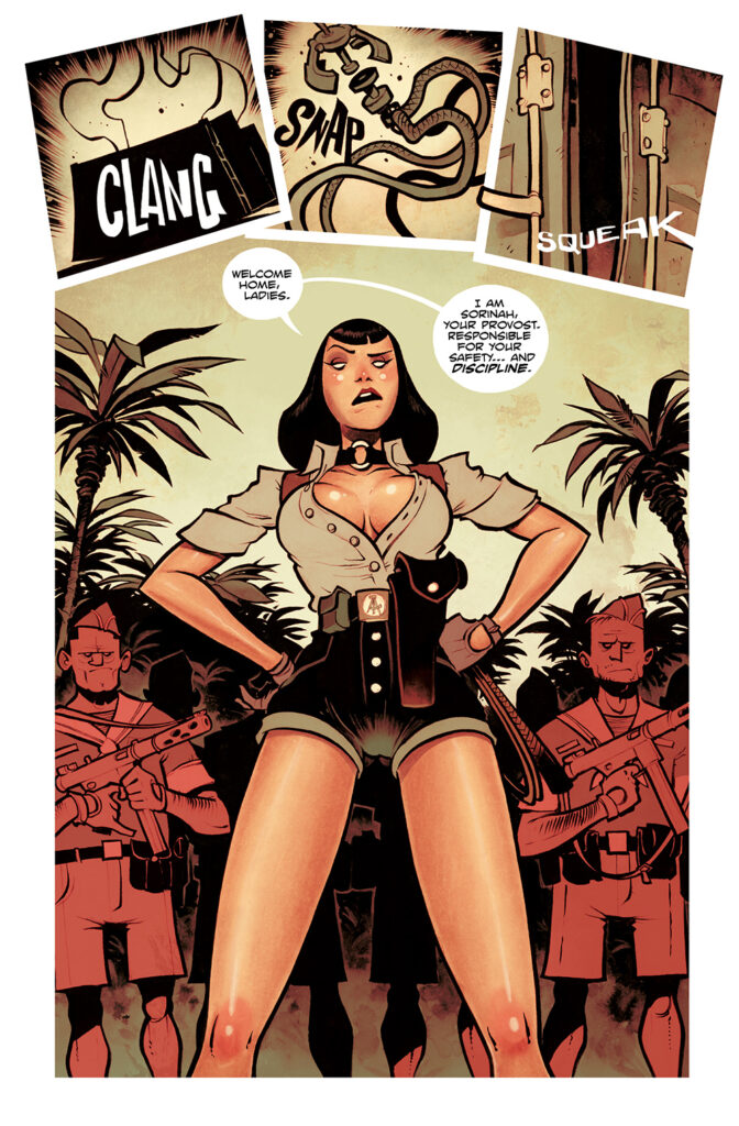 Visually, Tigress Island #1 is a spectacular achievement for artist EPHK. His style captures the “rough-around-the-edges” feel of classic exploitation films while utilizing modern layout techniques to heighten the tension. The depiction of the “she-devil” warden and the claustrophobic jungle environment creates a rhythmic tension that makes the world feel dangerous even in its quieter moments. This level of artistic authority ensures that every panel serves the narrative of survival and escape.