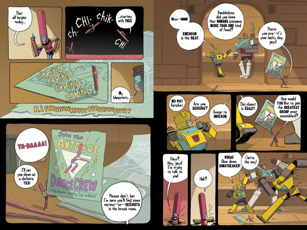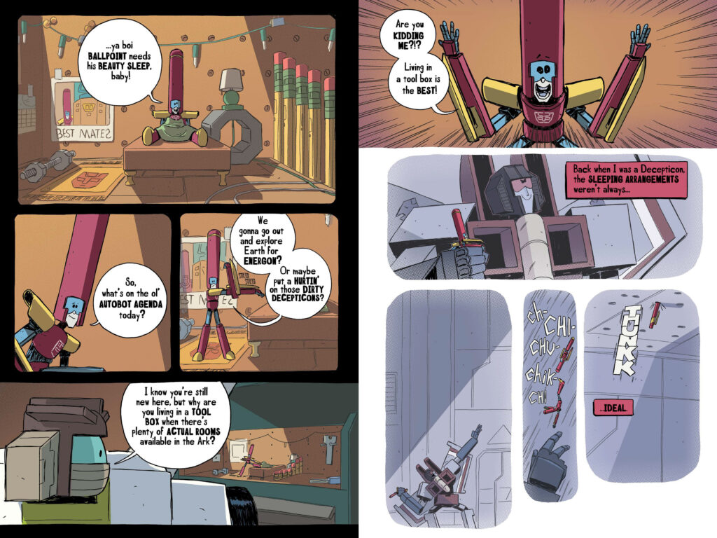 What readers should prepare for in TRANSFORMERS: Worst Bot Ever–Bot Swap! is a narrative that asks if bigger is truly better. Writer Brian “Smitty” Smith expressed his thrill at bringing more of this world to fans, noting that the book has “something for everyone, even if you hate pens!” The juxtaposition of Ballpoint’s insecurity with Megatron’s unmatched power provides a pensive look at identity and belonging, all wrapped in the slapstick humor that defined the first volume.