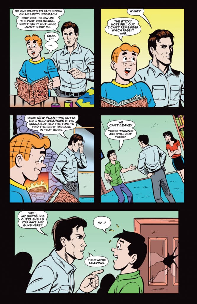 What readers should prepare for in Archie X Army of Darkness #3 is a narrative that finds its heart in a “bad news vs. worse news” hierarchy. The bad news? Archie Andrews has accidentally summoned the Army of Darkness to the peaceful streets of Riverdale by reading from the Necronomicon Ex Mortis. The worse news? While he didn’t properly complete the incantation, the Deadites are now actively hunting him to force him to finish the job. If they succeed, they’ll be unstoppable, and the Chok’lit Shoppe will be the first thing to burn.