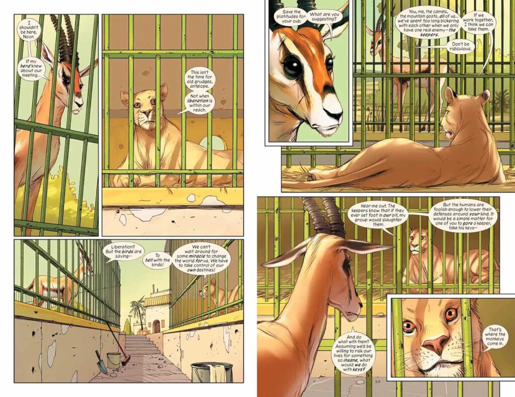 The pacing of the volume allows for a deep dive into the psychological toll of freedom. As the pride navigates the bombed-out streets, they encounter a hierarchy of diverse biologies—from starving giraffes to abandoned tanks—that force them to question the cost of their independence. For fans who track comic book covers for their storytelling clues, the new unwrapped and raw cover art by Henrichon perfectly sets the tone for the “brightly colored tragedy” described by USA Today.