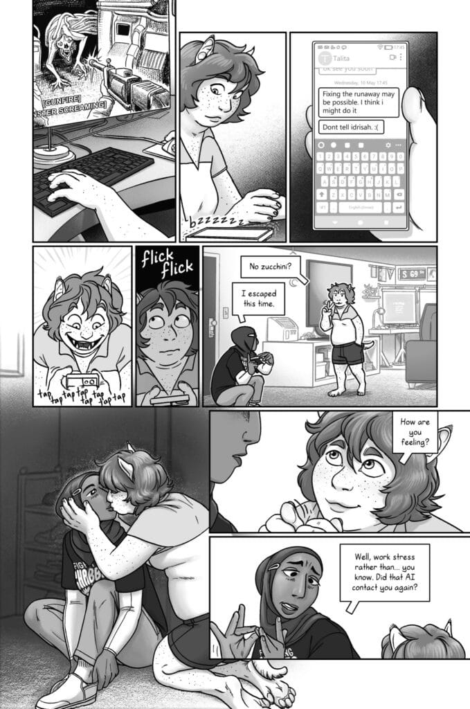 A major standout in RUNAWAY TO THE STARS is its focus on the hurdles of communication. Publisher C. Spike Trotman emphasizes that the story is for everyone who has ever felt “unheard.” The cast includes Gillie, a genetically-modified human who is Deaf and must navigate clunky tech, and Idrisah, a professional xenolinguist who can speak to double-larynxed Avians but struggles with her own family’s languages. This intellectual depth transforms the sci-fi setting into a pensive mirror of our own world.
